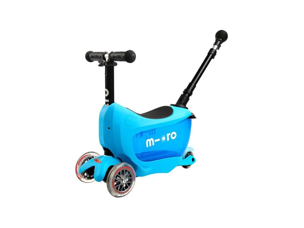 Micro Mini2go Deluxe plus koloběžka pro děti od 1,5 rokuÚžasně rafinovaná koloběžka pro děti. Rafinovanost spočívá v tom, že má úložný prostor, kam schováte všechny důležité věci, které se prostě do kabelky nehodí (např. výbavička na pískoviště, plyšový dětský kamarád ... ). Verze Deluxe Plus má navíc zadní vodící tyč a LED světýlko použitelné k osvětlení boxu nebo na řídítka jako klasické světlo.