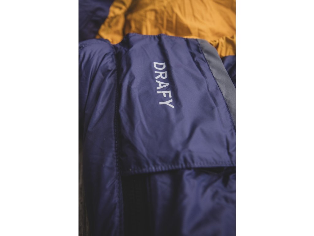 Péřový spacák Drafy v novém provedení se hodí i do extrémních podmínek a je ideální volbou pro milovníky outdoorových aktivit, kteří chtějí nocovat v teple a pohodlí. Pokud ti nevyhovuje spacák typu mumie, užij si pohodlí tohoto péřového spacího pytle v klasickém dekovém střihu, který je možné zcela rozepnout a rozložit na přikrývku. Vlastnosti: Kvalitní výplň z kachního peří pro vynikající tepelný komfort. Vysokou odolnost, pohodlí a izolační vlastnosti zaručí špičkové materiály na vnitřní i vnější straně. Spacák lze zcela rozepnout a použít jako přikrývku. Protiskluzové pásy na zadní části zabraňují sklouzávání spacího pytle z podložky. Značkový, zateplený dvoucestný zip s pojistkou pro snadnou manipulaci. Komfortní výbavu doplňují vnější a vnitřní kapsa na drobnosti.Doplňkové parametry